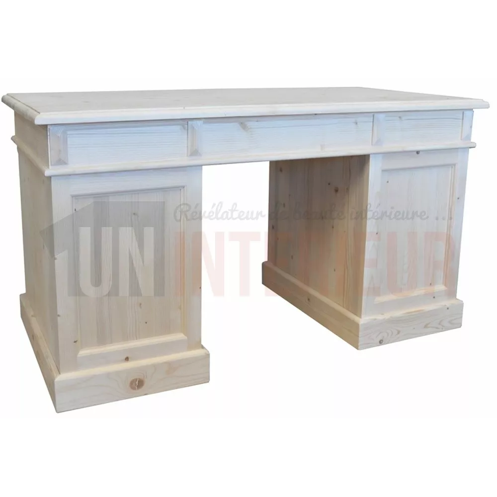 Composé au total de 3 parties démontables soit : le plateau avec les 3 tiroirs et les 2 blocs portes; ce bureau en pin massif est donc équipé de 3 tiroirs et de 2 portes.