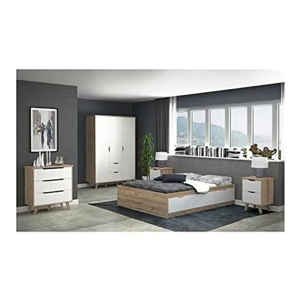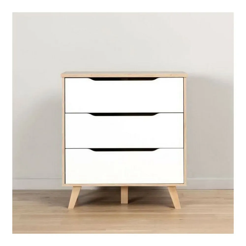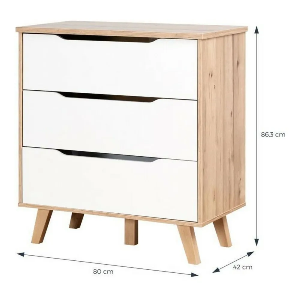 La commode Vankka de la marque BigBuy Home est un meuble fonctionnel au design moderne qui s’intègre parfaitement dans des intérieurs de style scandinave et contemporain. Principalement fabriquée en bois de haute qualité avec une finition blanc mat associée à des détails en chêne, cette commode présente une structure robuste et esthétique qui apporte luminosité et chaleur à toute pièce, notamment la chambre. Son format rectangulaire offre une solution pratique de rangement avec trois grands tiroirs, idéaux pour organiser vêtements, accessoires ou autres objets, tout en conservant l’ordre sans sacrifier le style. Ses dimensions totales sont de 80 cm de largeur, 42 cm de profondeur et une hauteur notable de 86 cm, incluant les élégants pieds en bois massif qui surélèvent légèrement le meuble, facilitant le nettoyage et apportant une touche naturelle. La fabrication européenne garantit la qualité des matériaux et finitions, ainsi qu’une construction solide pour une utilisation durable. Ce design simple mais soigné s’adapte aussi bien aux décors minimalistes qu’aux ambiances plus chaleureuses, constituant une pièce polyvalente alliant fonctionnalité et esthétique. La commode Vankka est, en somme, une solution pratique et élégante pour ceux qui recherchent un meuble de rangement résistant et facile à intégrer dans différents espaces de la maison, combinant la tradition du bois avec la simplicité et la pureté du style nordique.