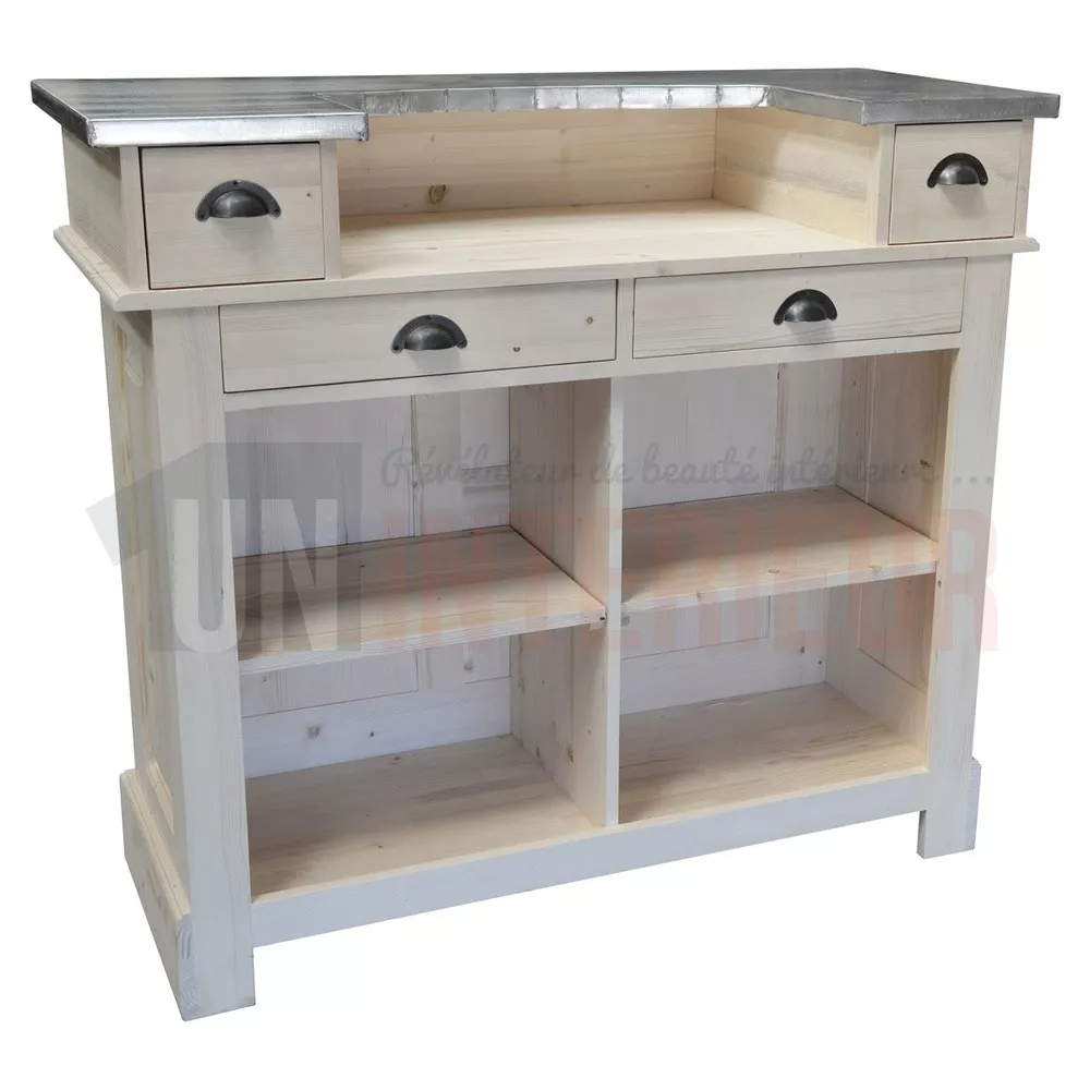 Véritable pilier de notre collection, ce petit bar en pin massif de 120cm de long est disponible en version plateau zinc ou plateau bois.