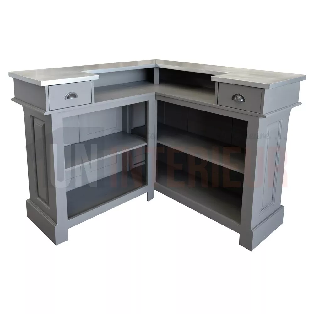 Que vous soyez un professionnel désireux d'acquérir un meuble de caisse, une banque d'accueil ou un comptoir de dégustation voire un particulier voulant créer un espace chaleureux à l'ambiance bistrot, ce meuble d'angle est fait pour vous.