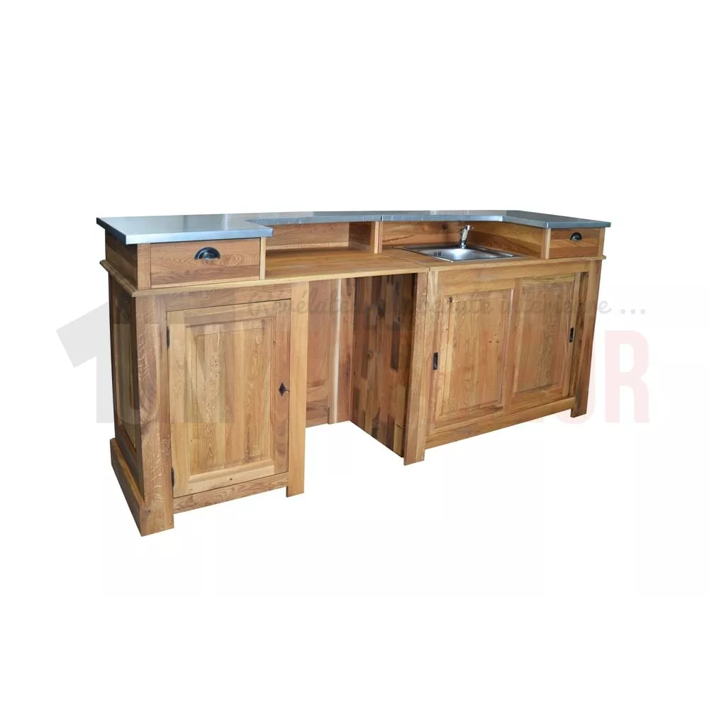 Spécialement conçu pour nos clients ayant une activité CHR (Café - Hôtellerie - Restauration), ce grand meuble de bar en chêne massif fait 2,40 mètres de large.
