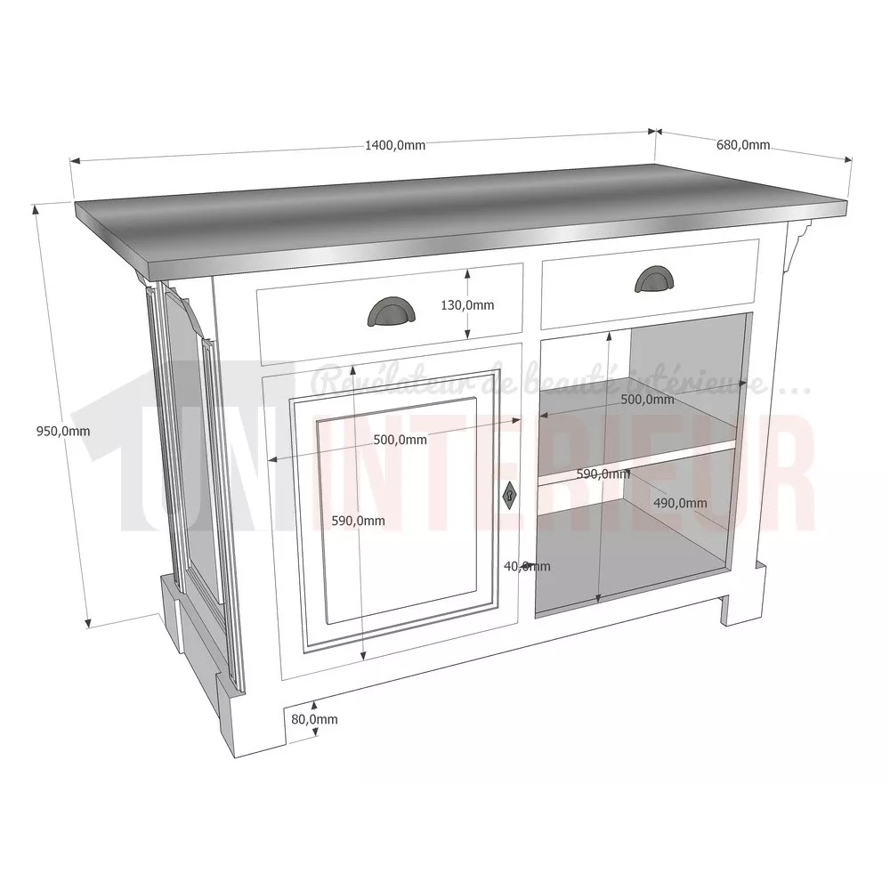 - Largeur = 140cm - Profondeur = 68cm - Hauteur = 95cm.