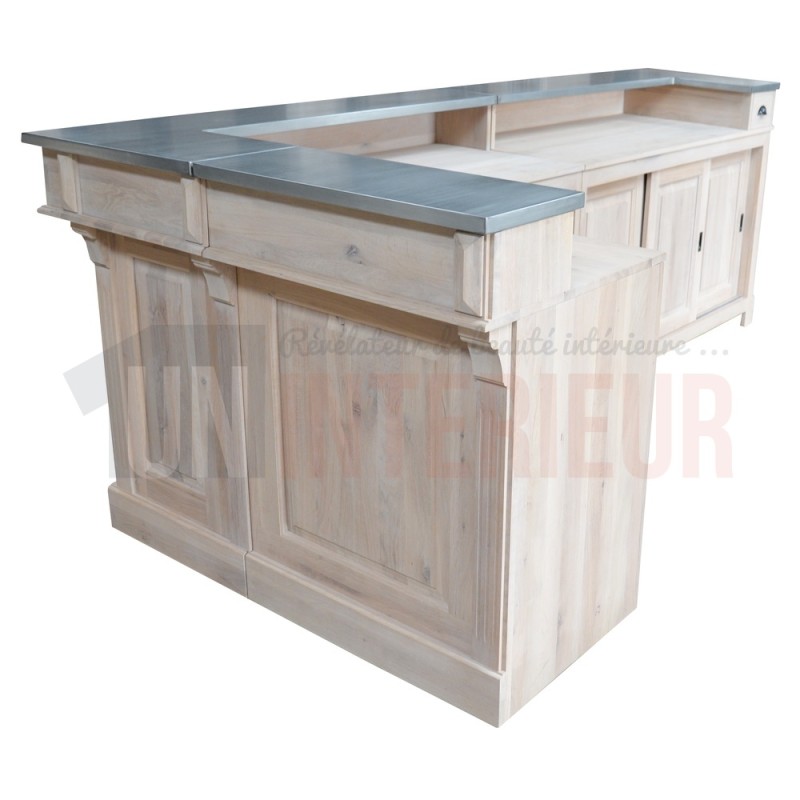 - Composé de trois parties : deux de 150cm chacune et une de 75cm (soit un meuble 300cm x 140cm, la profondeur de la partie en 300cm de large étant de 65cm).