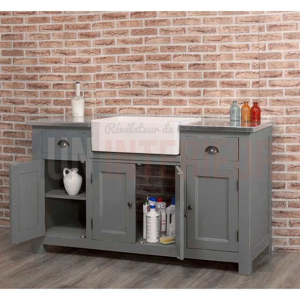 Ce grand meuble évier de cuisine est équipé de 4 portes et comme toujours, l'évier timbre en céramique est offert.