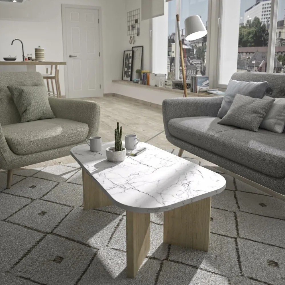 La Table Basse QUARTZ de la marque BigBuy Home est un meuble contemporain qui allie fonctionnalité et style dans un design ovale élégant. Elle est fabriquée avec une combinaison distinctive de matériaux de haute qualité : un plateau imitation marbre blanc, offrant un aspect sophistiqué et facile à intégrer dans différents espaces, et des pieds robustes en chêne massif garantissant stabilité et durabilité. Ses dimensions de 105 x 58 x 39 cm en font un meuble polyvalent, idéal pour les salons et espaces de vie nécessitant une table d’appoint pratique sans sacrifier l’esthétique. La structure ovale apporte non seulement un design contemporain et fluide, mais facilite aussi la circulation autour de la table, évitant les angles gênants et assurant plus de sécurité dans un environnement familial. Sa couleur blanche dominante et la finition effet marbre permettent une intégration harmonieuse avec divers styles de décoration, du minimaliste au plus classique, faisant de cette table un élément à la fois fonctionnel et décoratif. L’association de matériaux naturels et le soin apporté au design reflètent une tendance actuelle du mobilier, qui mise sur la qualité visuelle et sensorielle sans perdre la praticité au quotidien. En résumé, cette table basse QUARTZ se présente comme une option équilibrée pour ceux qui recherchent un complément élégant et solide, apportant caractère et modernité à leur intérieur.