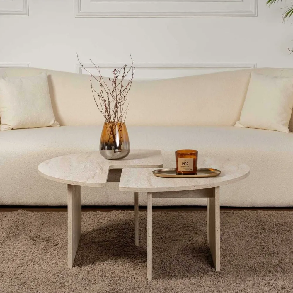 La table basse MOIRA de BigBuy Home est un meuble alliant fonctionnalité et esthétique contemporaine, idéal pour les salons et espaces de vie modernes. Elle se distingue par son design rond qui facilite la circulation autour de la table et apporte douceur et harmonie à l’environnement. Sa surface présente un effet marbre travertin, une finition imitant fidèlement la texture et les veines naturelles du marbre, offrant une touche élégante et sophistiquée sans les soins spécifiques de la pierre naturelle. Ses dimensions, 90 x 90 x 41 cm, la rendent suffisamment compacte pour des espaces de taille moyenne, apportant fonctionnalité et point focal de design sans surcharger visuellement. La structure robuste et équilibrée garantit stabilité et durabilité au quotidien, adaptée pour poser objets décoratifs, livres ou consommations. Cette table basse BigBuy Home est une option pratique et stylée, s’intégrant facilement à divers styles décoratifs, du classique revisité au moderne industriel, idéale pour ceux qui recherchent un complément élégant avec une finition simulant des matériaux naturels. En somme, la table MOIRA offre un design soigné et des dimensions fonctionnelles qui complètent tout intérieur avec discrétion et personnalité.