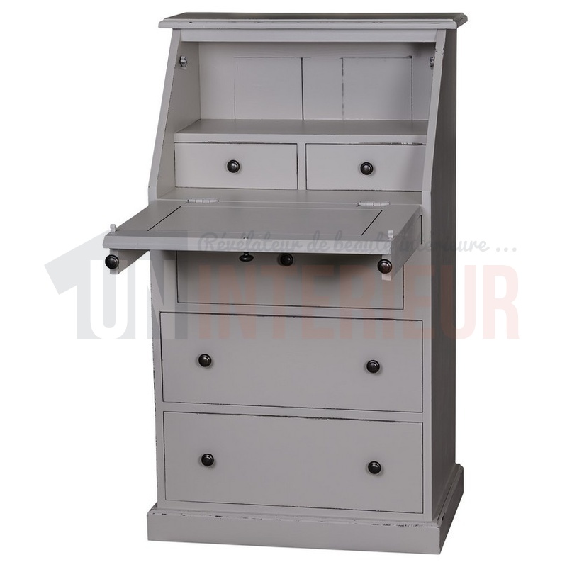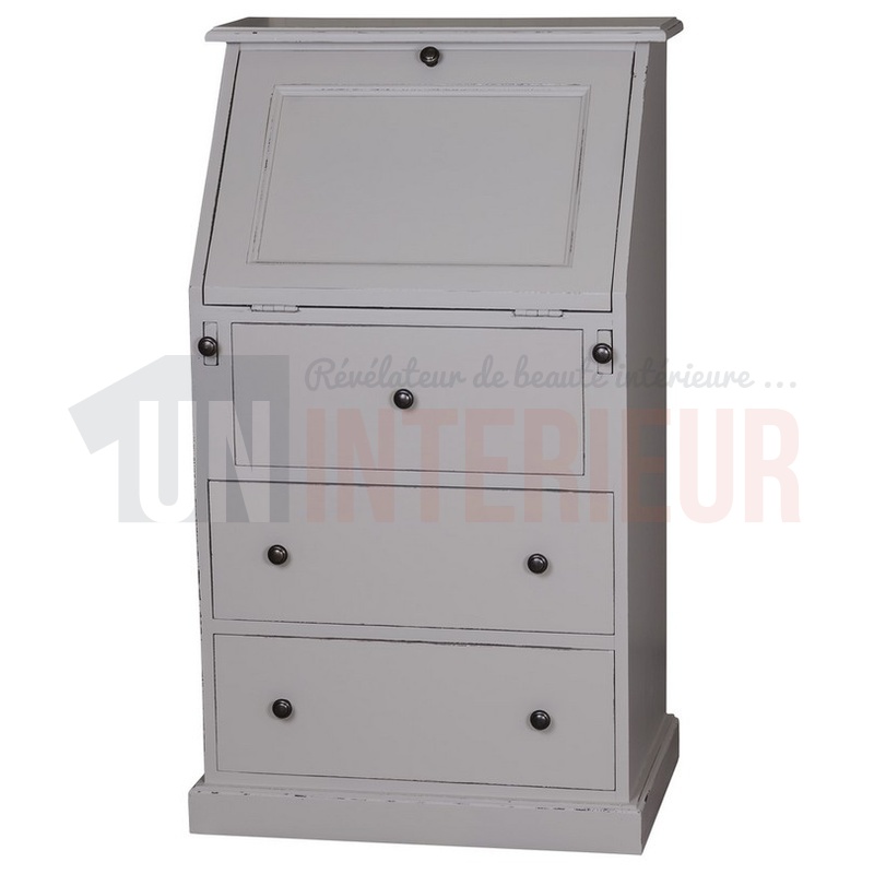 Ce bureau en pin type secrétaire, petit modèle de la gamme donkey est équipé de 3 tiroirs en partie basse ainsi que 2 tirettes sur lesquelles viendra se poser la porte une fois rabattue.